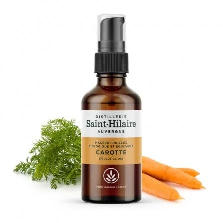 Obtenu par macération des racines de carotte dans une huile végétale de Tournesol bio, ce macérât huileux est élaboré selon un savoir-faire traditionnel, permettant d’extraire en douceur les composés naturellement présents dans la plante.